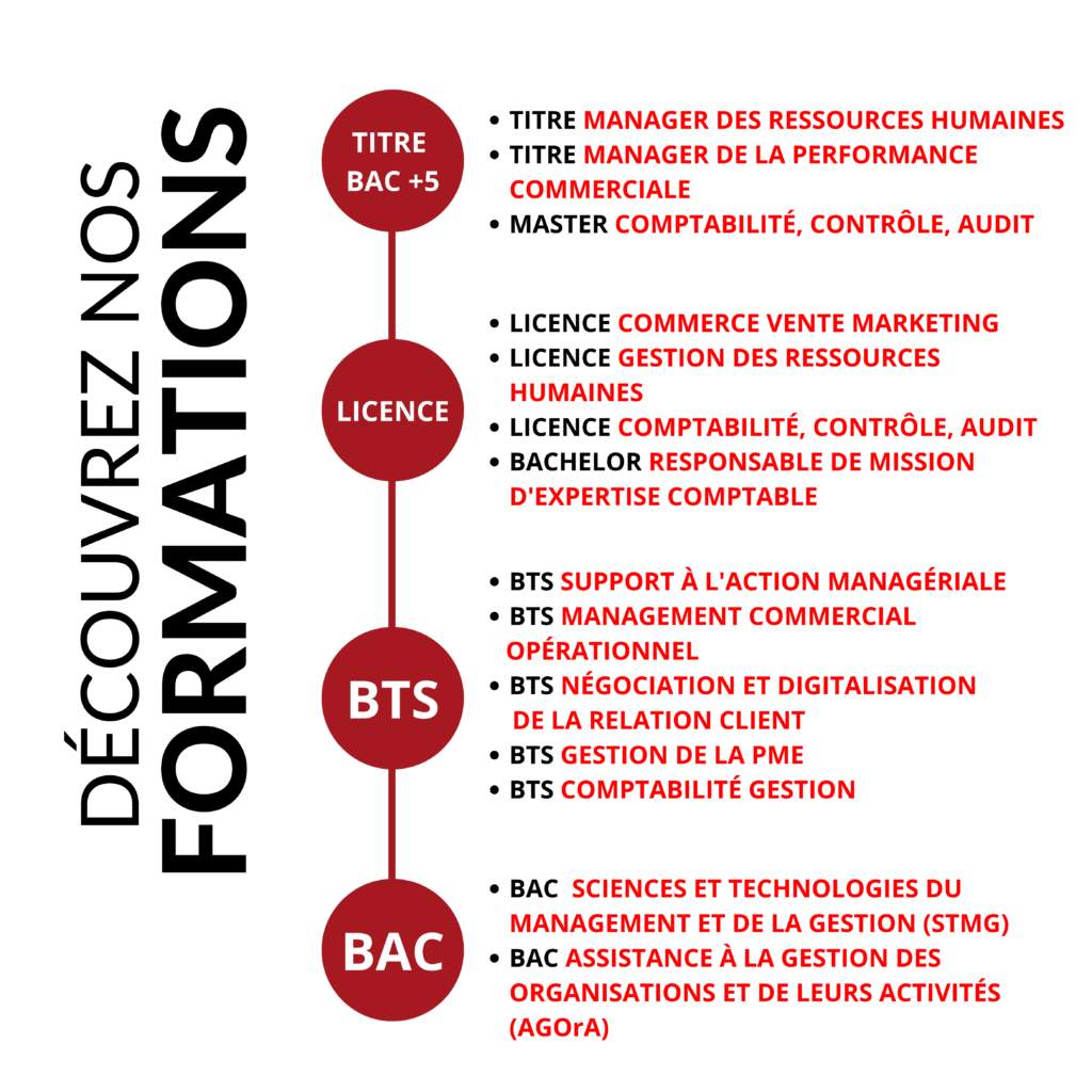 Lycéens et étudiants : rejoignez une école conviviale et dynamique à deux pas de la gare ! Nos formations BAC à BAC+5 sont accessibles par voie scolaire ou alternance.